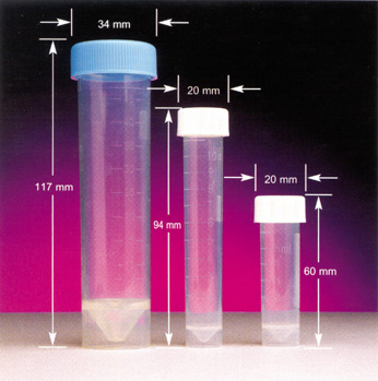 Conical tubes with freestanding skirt are autocalvable and have write-on area on