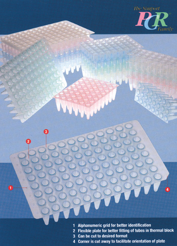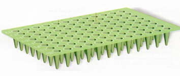 96-well PCR plates are thin-walled and designed