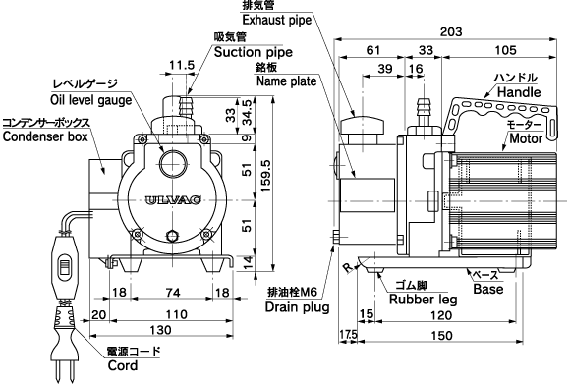 G-5DA Two-stage Á÷°áÇü À¯È¸Àü Áø°øÆßÇÁDirect Drive Oil-Sealed Rotary Vacuum Pump »ç¡¡ ¾ç Unit 50Hz 60Hz ¹è±â ¼Óµµ L/min. 5 6¡¡¡¡ µµ´Þ ¾Ð·Â Pa 6.7 ( 5 x 10-2 Torr ) »ç¿ëÀüµ¿±â ¡¡ Single phase.100V, 40W, 4 poles, capacitor run ȸÀü¼ö r.p.m. 1,250 1,550 À¯·®/»ç¿ëÀ¯ mL 180 / MR-100 »ç¿ëºÐÀ§±â¿Âµµ ¡É 7¡40 SIZE mm 130(W)¡¿203(L)¡¿159.5(H) |
