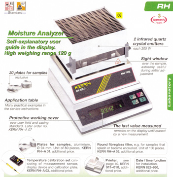 ¡°RH¡±, with Infrared Dryer / Balancing, Digital Display 1 mg ¡ 120 g, 0 ¡ 100 %, ÀüÀÚµ¿ Àû¿Ü¼± ¼öºÐÃøÁ¤±â, Digital Á¤¹ÐÇü, CE / DKD / ISO ÀÎÁõ |